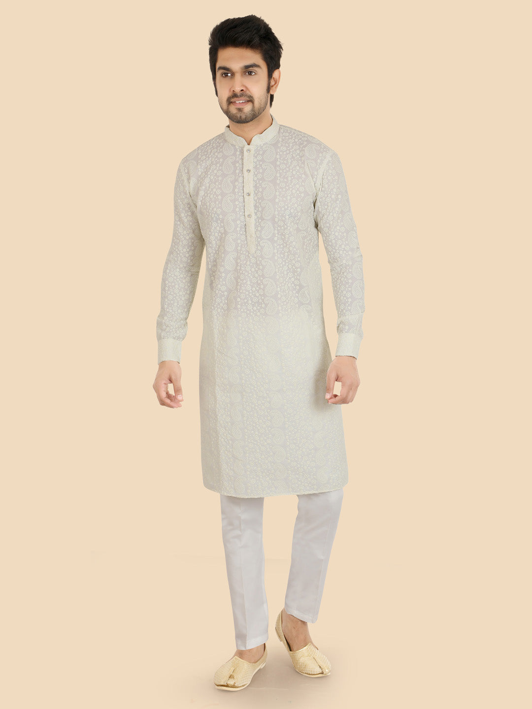 Elevate your ethnic wardrobe with this elegant Jacquard Kurta Set, available in rich lavender and classic cream. Crafted from a breathable cotton blend fabric with jacquard weave, this 2-piece ensemble includes a stylish kurta and comfortable pyjama pants. The kurta features a round collar, straight fit, long sleeves, and side slits—designed for ease and tradition. Whether you're dressing for a festive celebration, family function, or cultural event, this set combines modern comfort with timeless Indian style. The elasticated waistband and drawstring closure ensure a snug and adjustable fit, making it perfect for all-day wear.