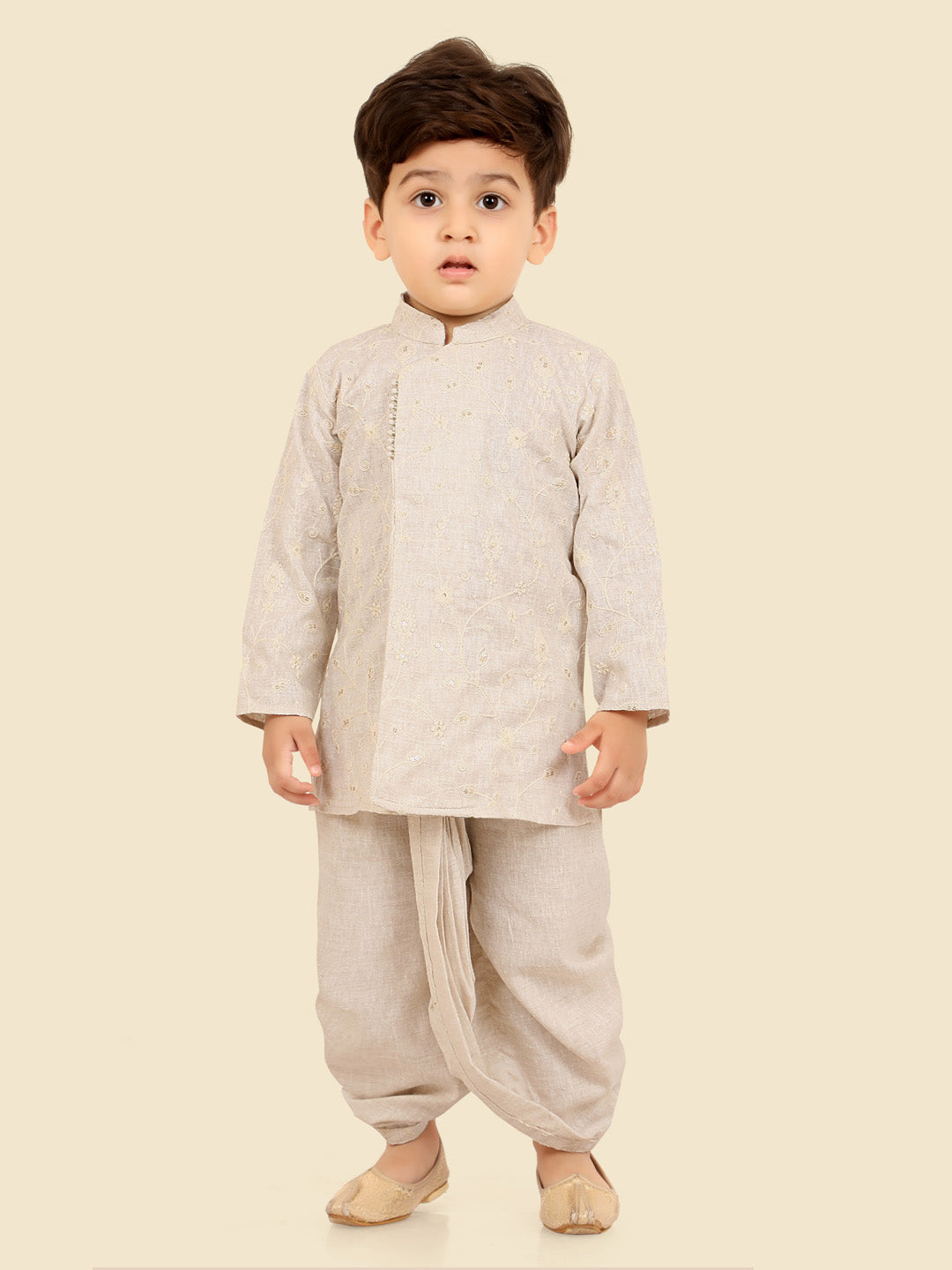 Celebrate your child’s festive moments in style with the Little Desi NATURAL Kurta Dhoti Set. Crafted from a comfortable cotton blend, this ethnic outfit features elegant details and a breathable fabric, ideal for Indian weather and traditional events.