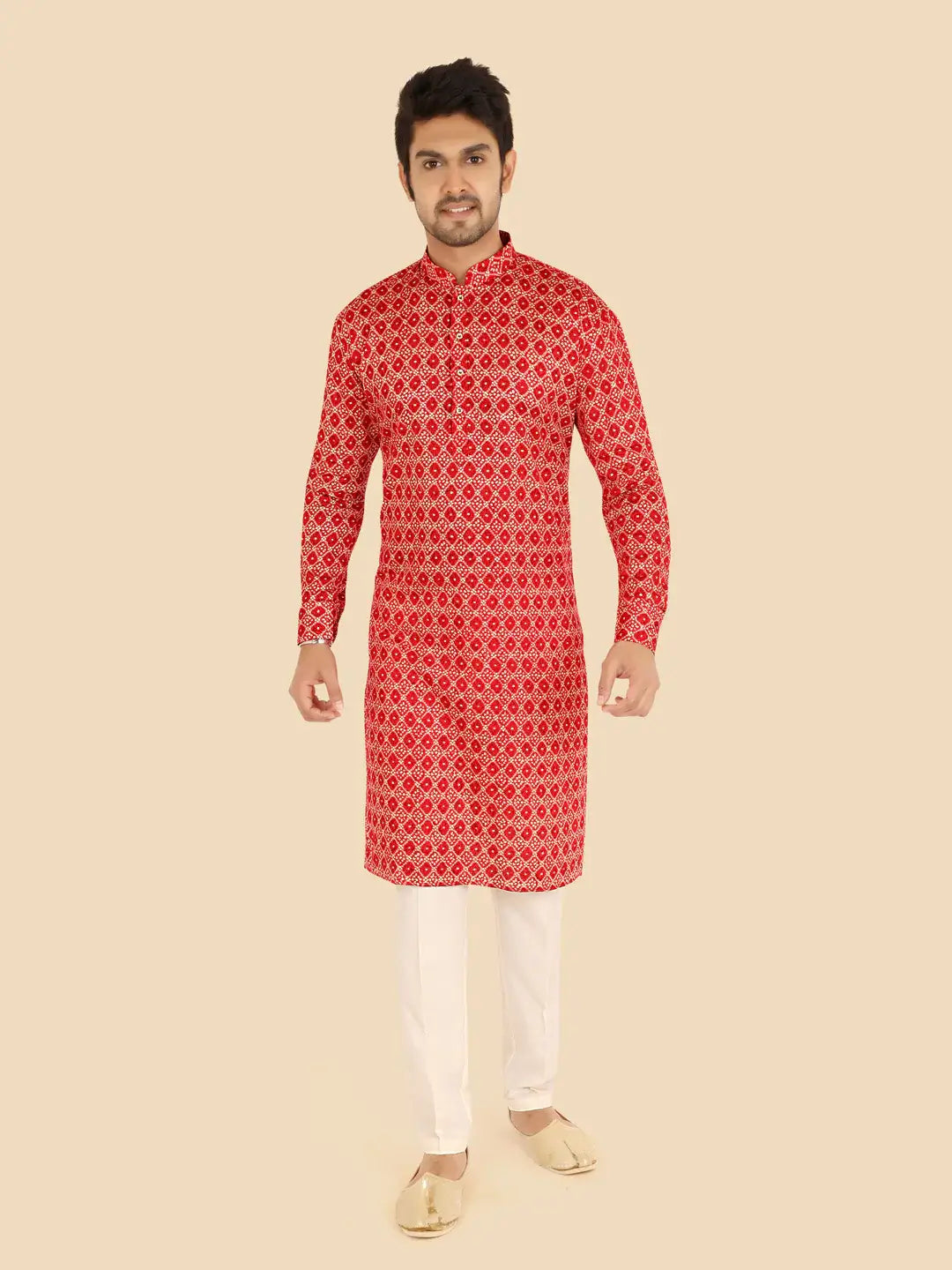 Upgrade your little one’s ethnic wardrobe with this 2-piece Kurta and Pyjama set in vibrant Red and Blue hues. Designed with traditional elegance and modern comfort in mind, this ensemble is perfect for festivals, family gatherings, or cultural events. Crafted from breathable cotton blend fabric, the kurta features a stylish round collar, long sleeves, and a straight cut for a polished look.
